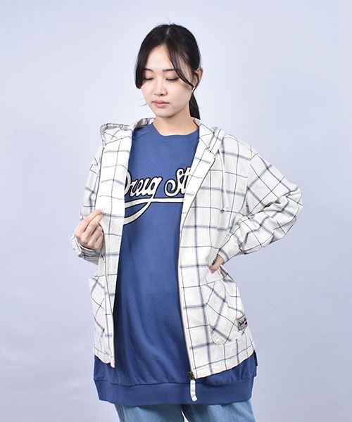 drug store's C/Lビンテージチェック パッチポケット シャツパーカー