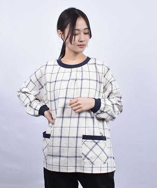 drug store's C/Lビンテージチェック 衿ぐりリブパッチポケット シャツ