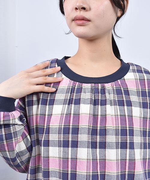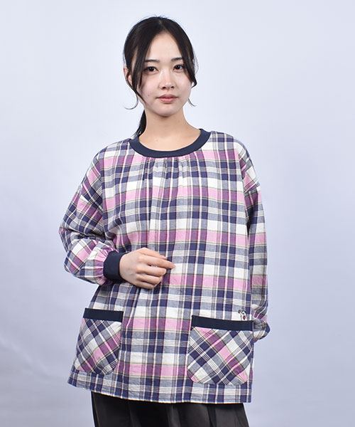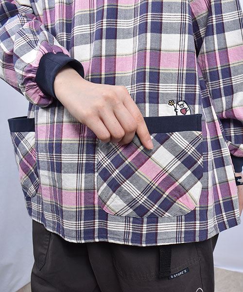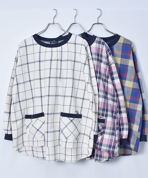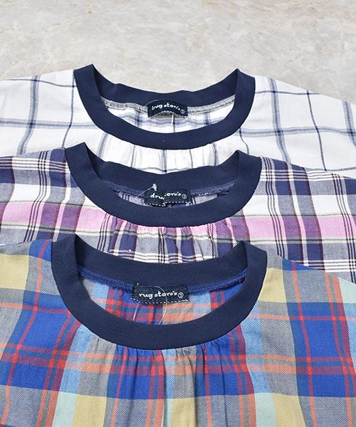 drug store's C/Lビンテージチェック 衿ぐりリブパッチポケット シャツ