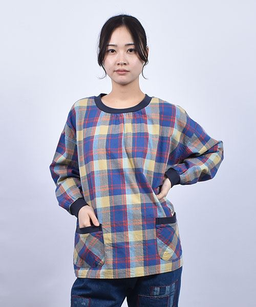 drug store's C/Lビンテージチェック 衿ぐりリブパッチポケット シャツ
