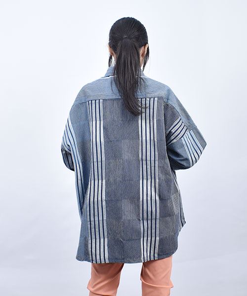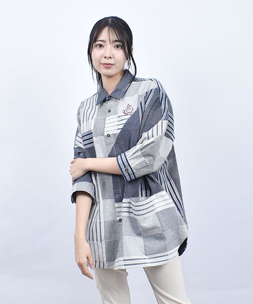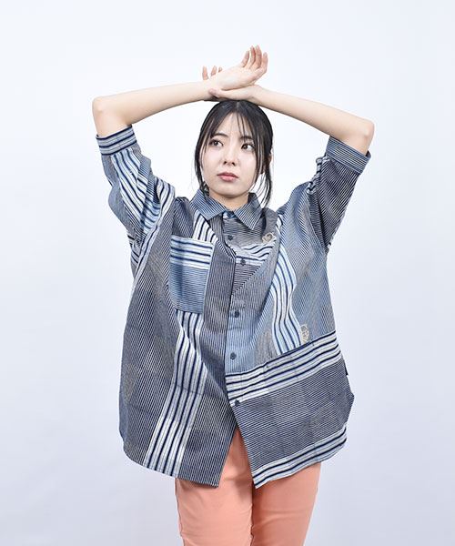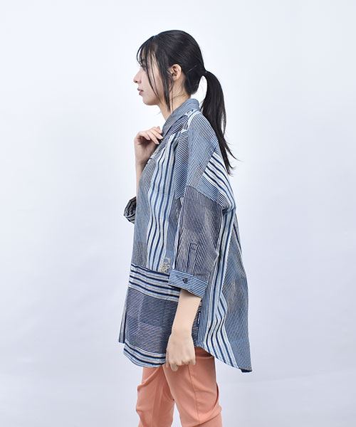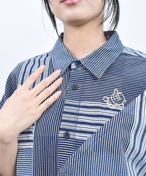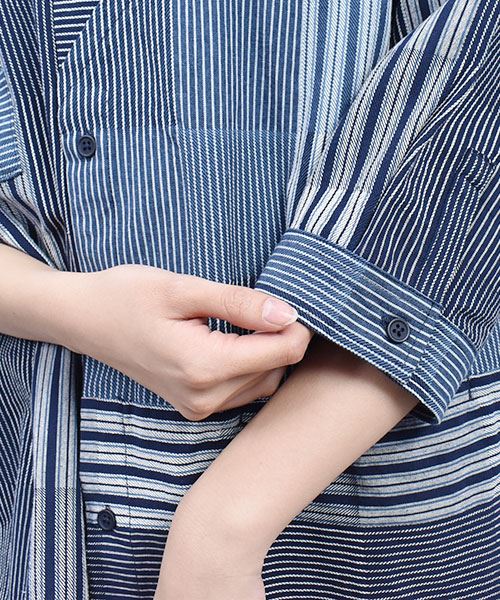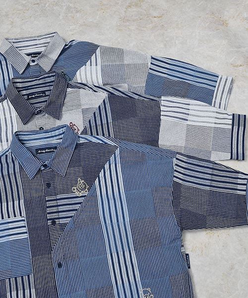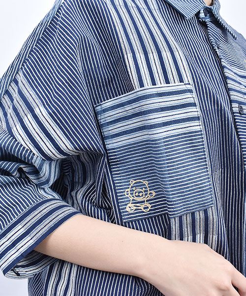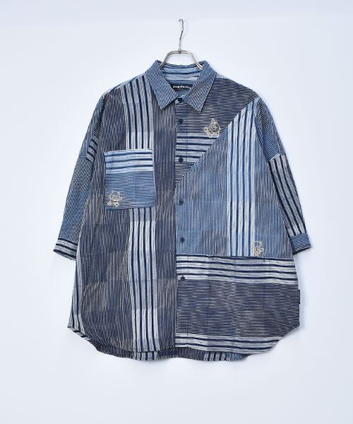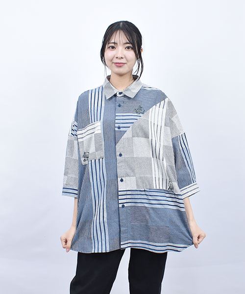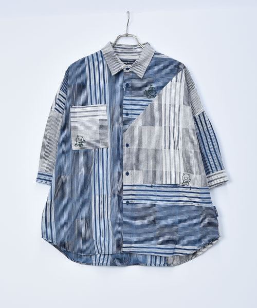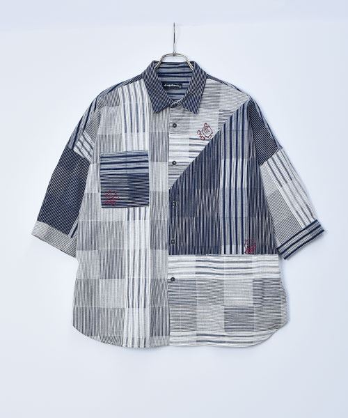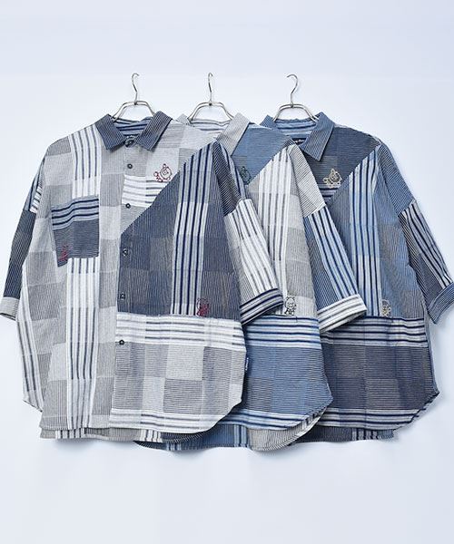 drug store's スタンディ刺繍 ハギハギ 7分袖 BIGシャツ
