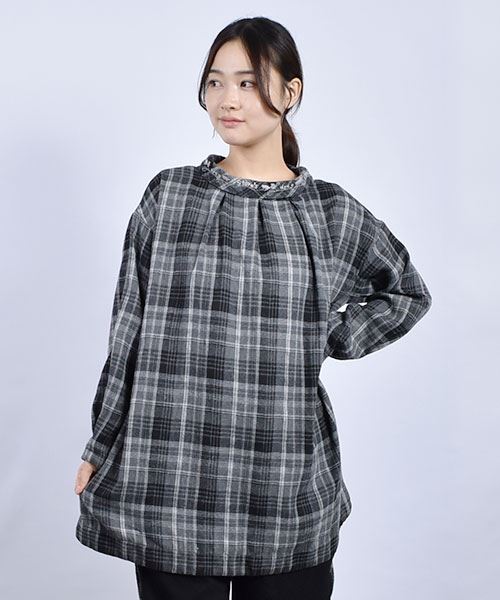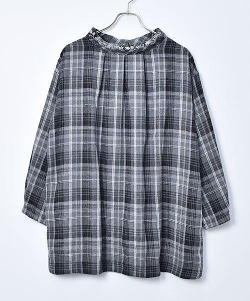 drug store's 衿刺繍 2WAY チェック チュニック