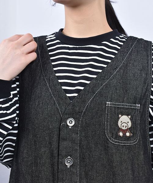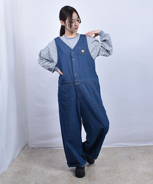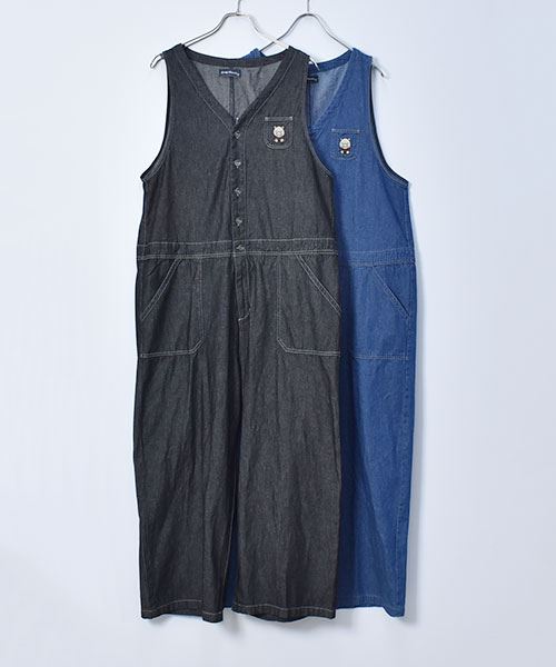 drug store's 6ozデニム スタンディ刺繍 BIGサロペット