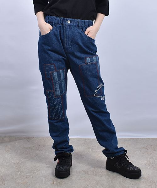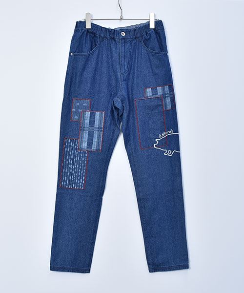 drug store's ツイル インディゴデニム アップリケ パンツ