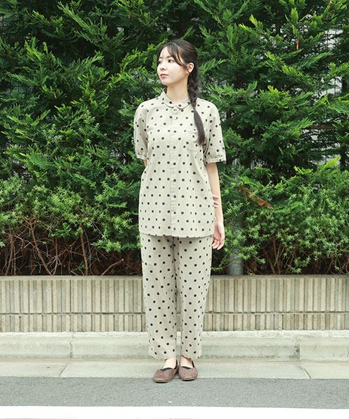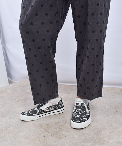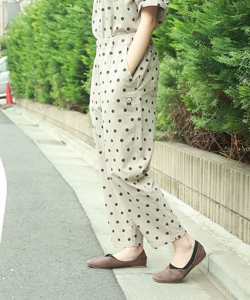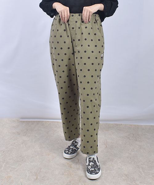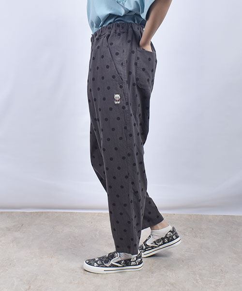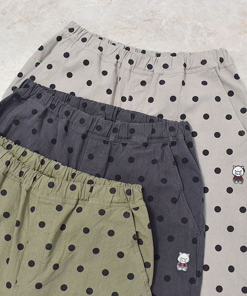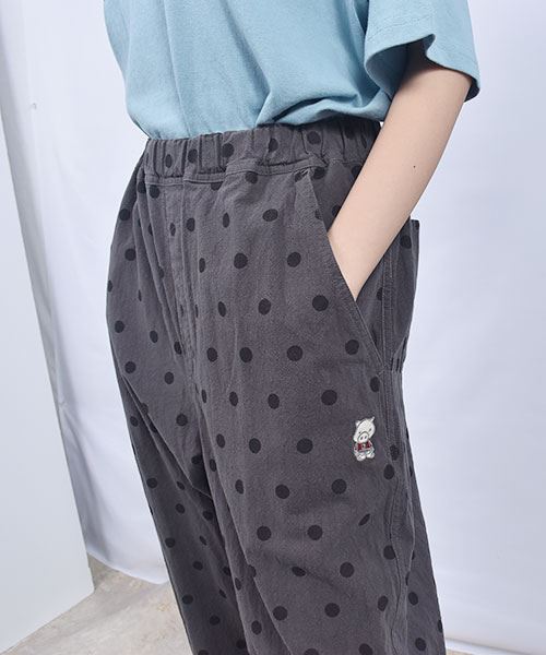 drug store's ドット柄プリント ブタ刺繍 スッポリ 8分丈 パンツ
