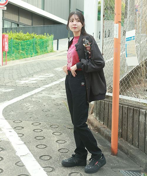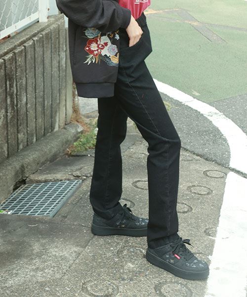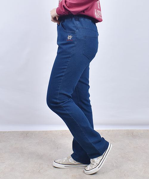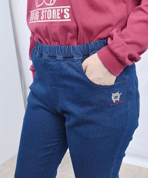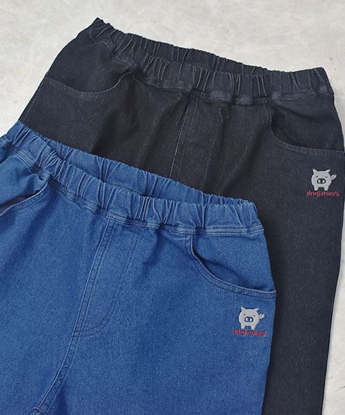 drug store's 刺繍 ストレート すっぽり ストレッチデニムパンツ