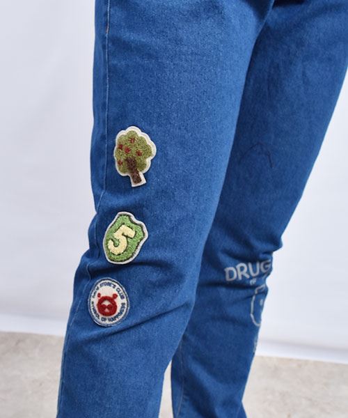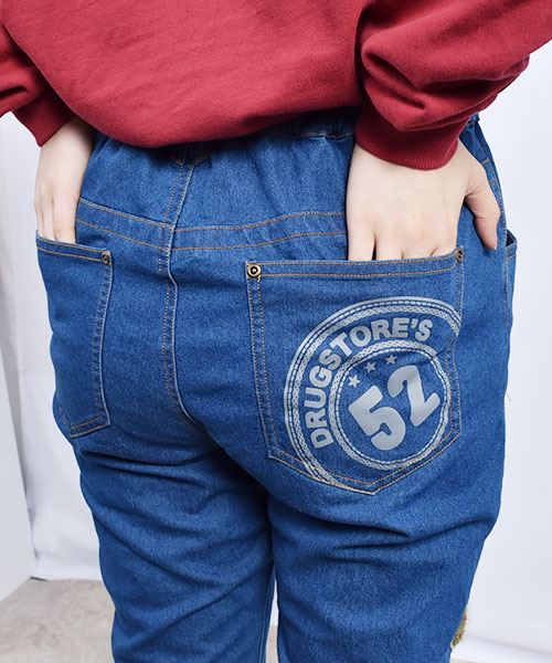 drug store's 6.0ozデニム ワッペン スタンディプリント パンツ