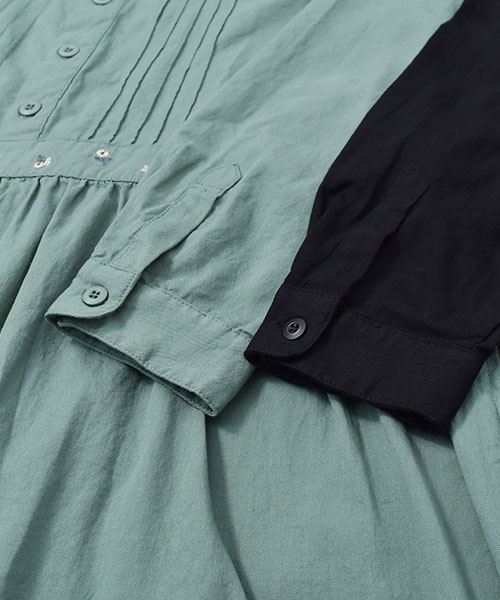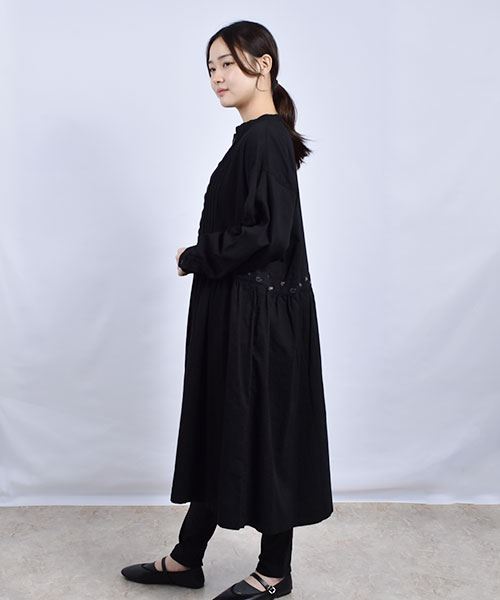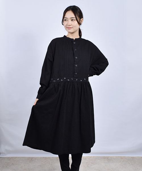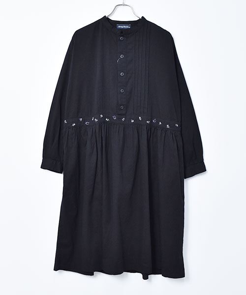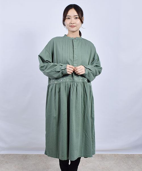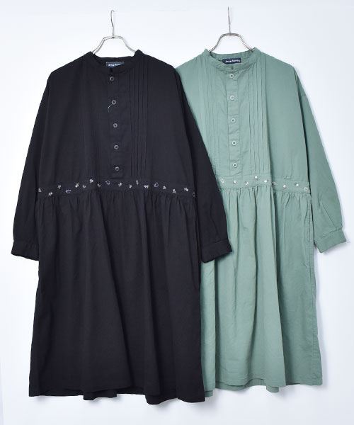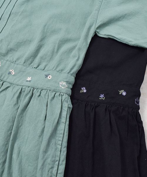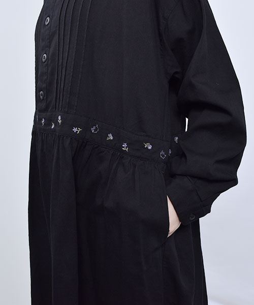 drug store's 花刺繍 ピンタック ウエスト切替 ワンピース