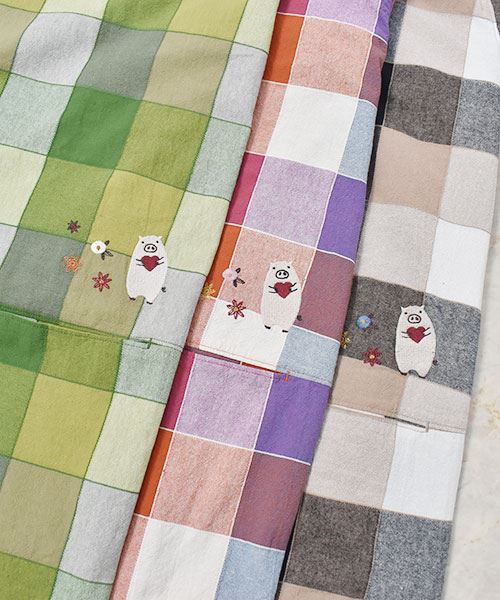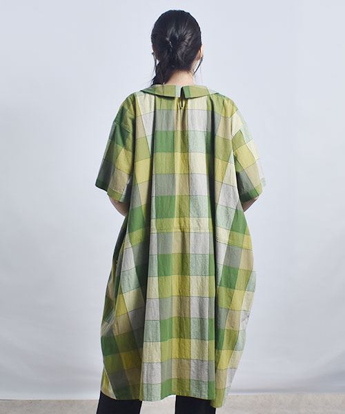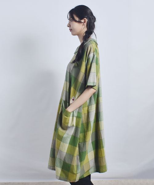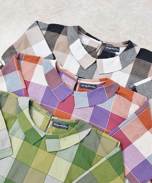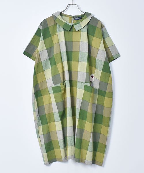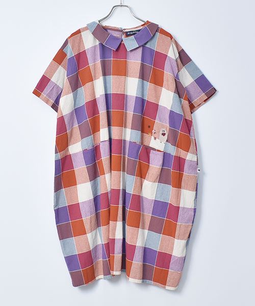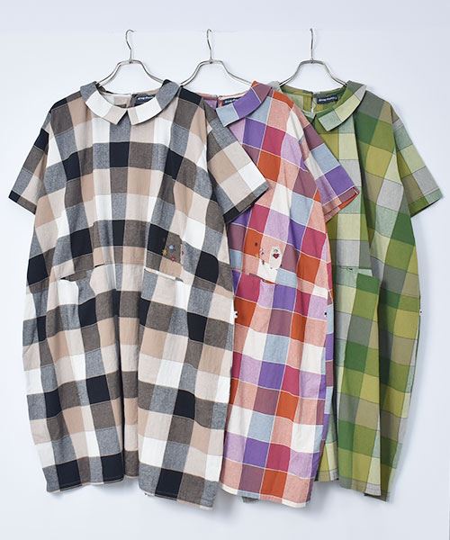 drug store's 衿付き チェック ハートン刺繍 コクーン ワンピース