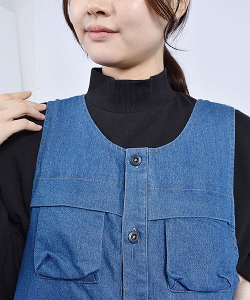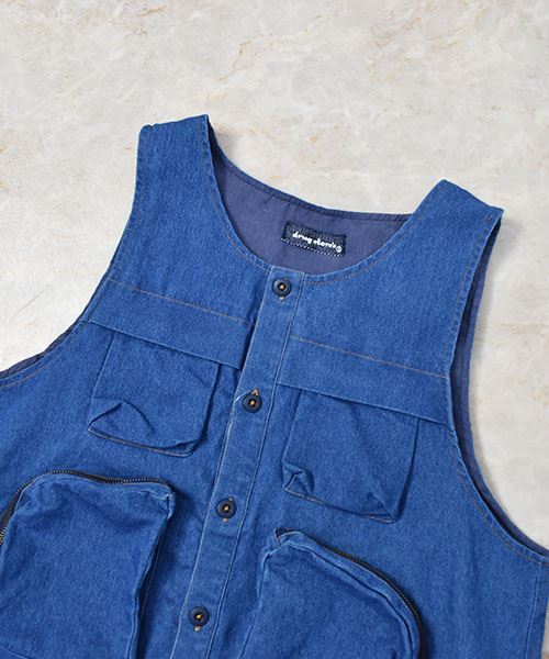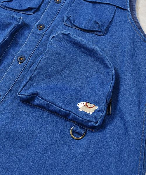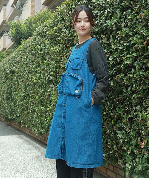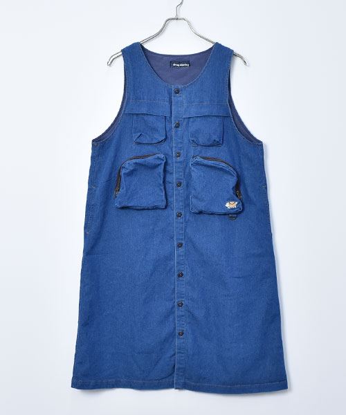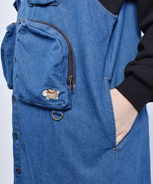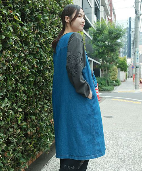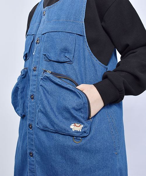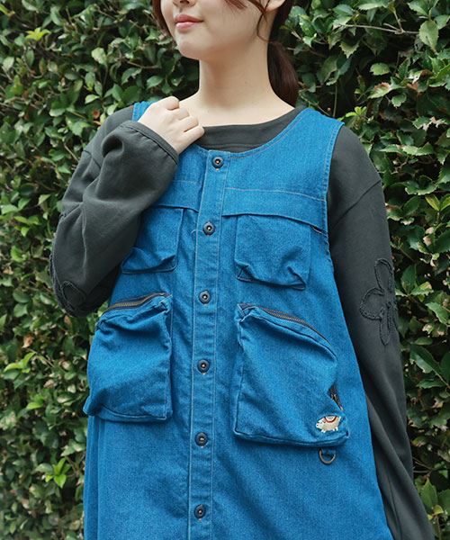 drug store's ブタ刺繍 マチ付きポケット デニム ジャンスカ