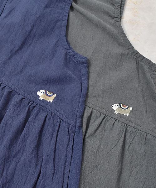 drug store's ブタ刺繍 衿ぐりドロスト ジャンスカ