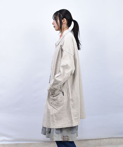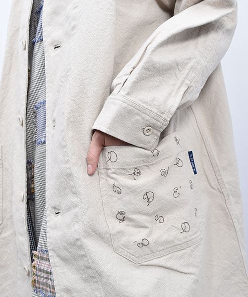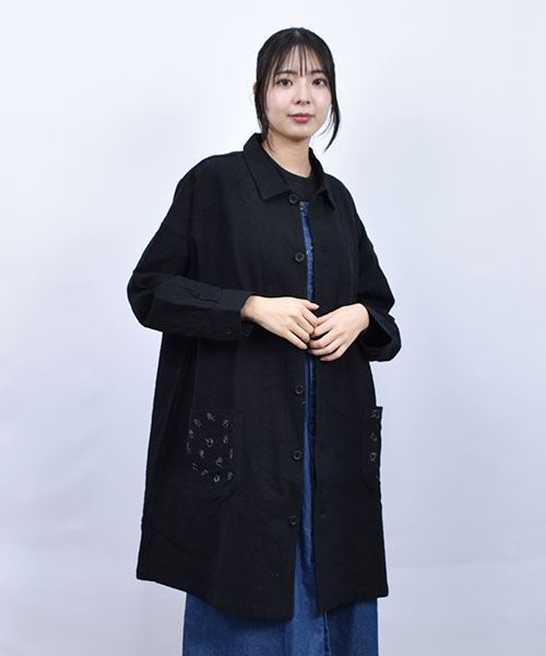 drug store's 無地ホップサップ 刺繍ポケット ロング 羽織