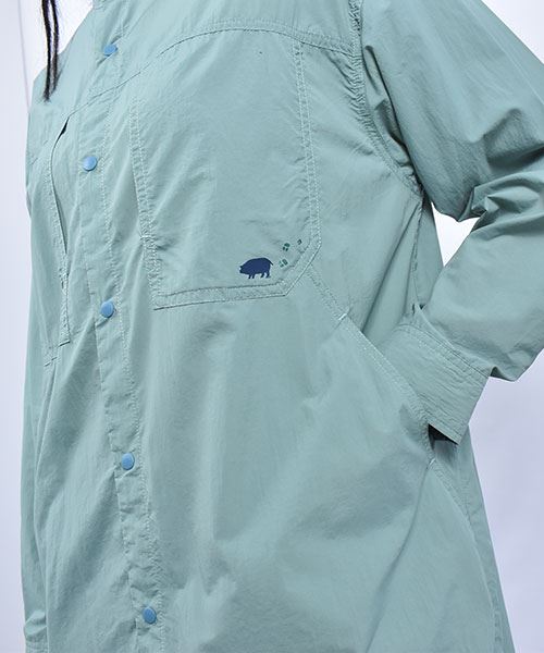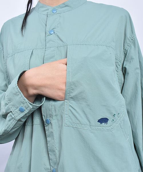 drug store's スタンドカラー 胸ポケットブタプリント スナップボタン チュニック
