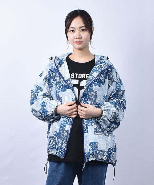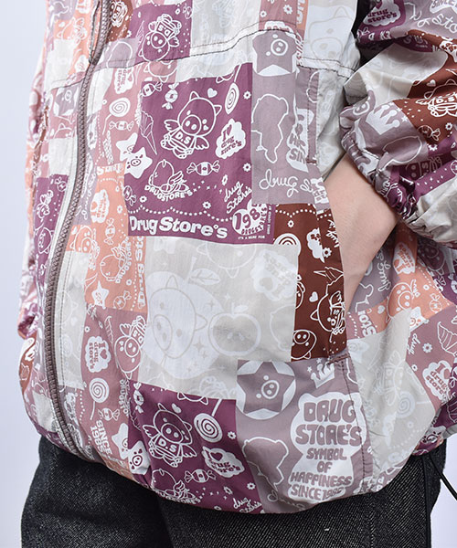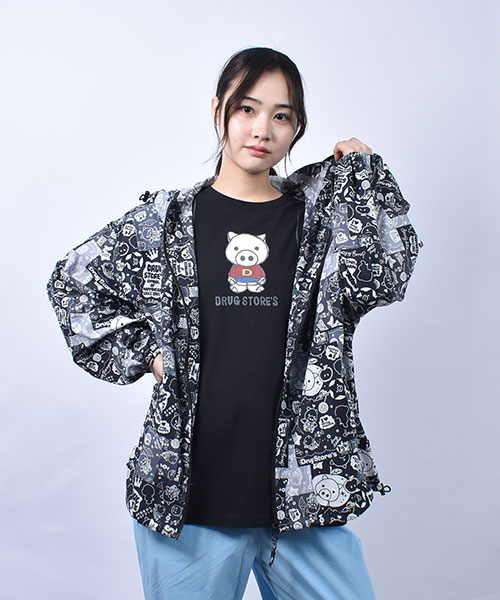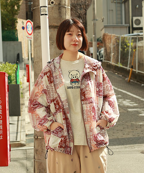 drug store's ブタ総柄プリント 袖太 パーカー