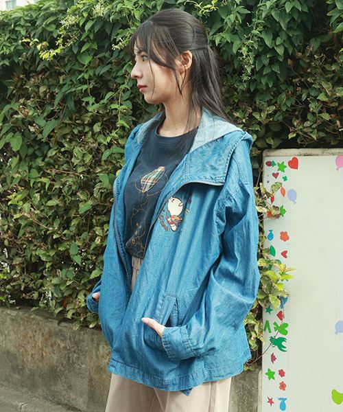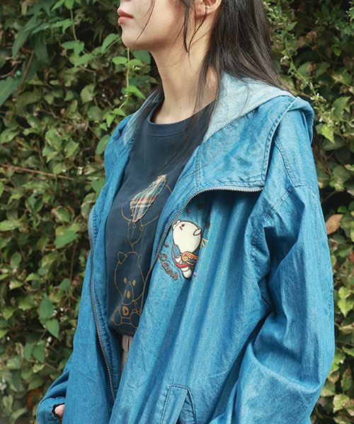 drug store's ブタ刺繍 バックロゴプリント デニム BIG ブルゾン