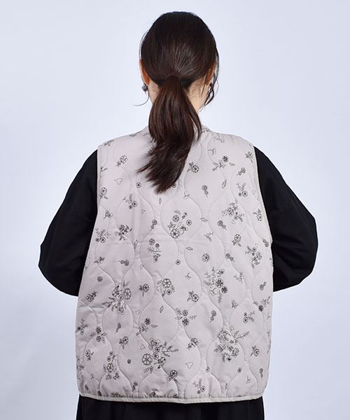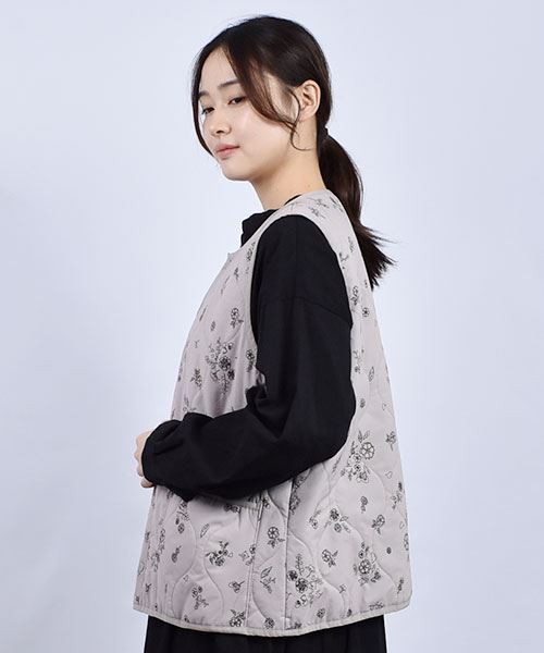 drug store's 総柄プリント キルト ベスト