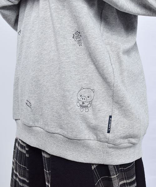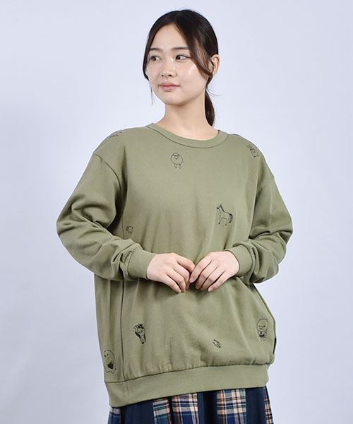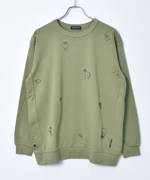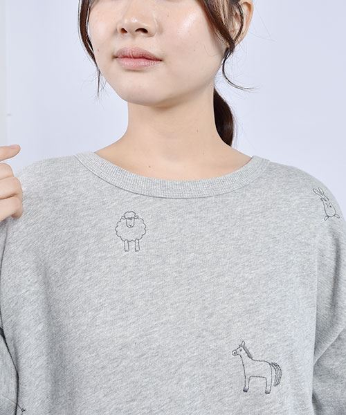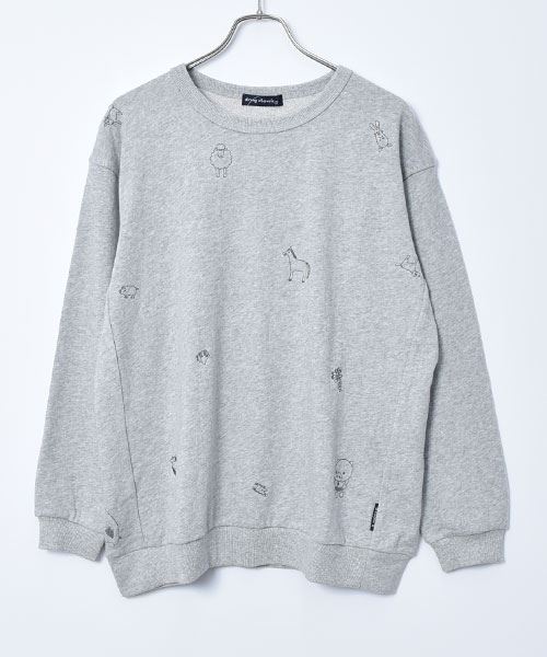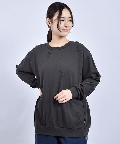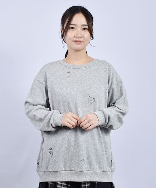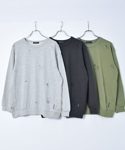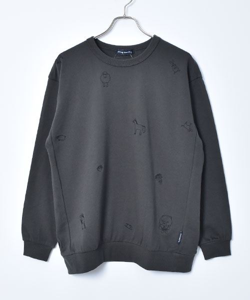 drug store's 裏毛 総柄刺繍 リブ トレーナー