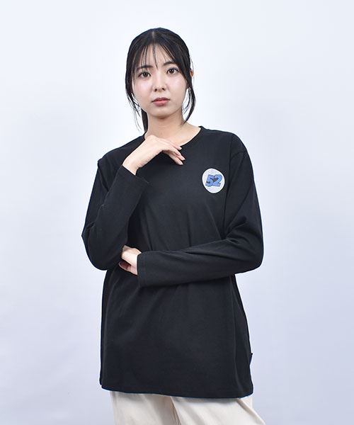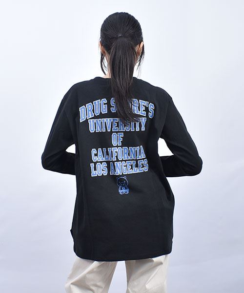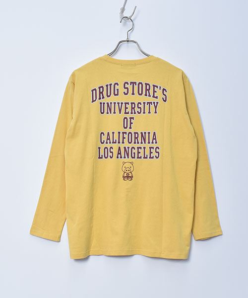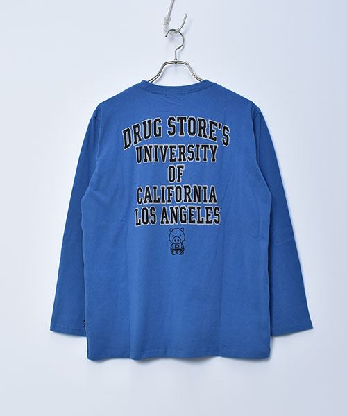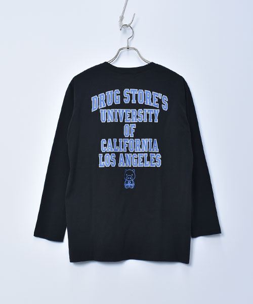 drug store's 21/-OE天竺 バックロゴプリント 定番セットイン ロンT
