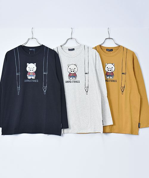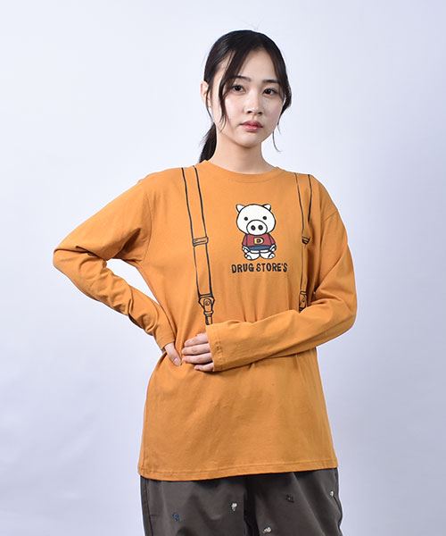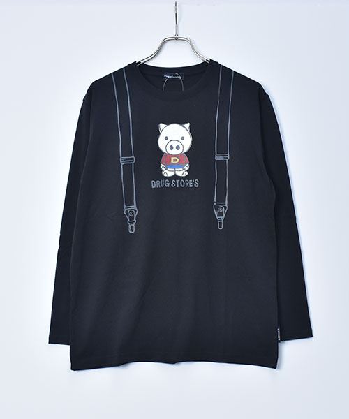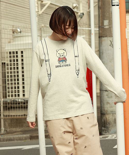 drug store's 20/-OE天竺 だまし絵 サスペンダー&スタンディプリント ロンT