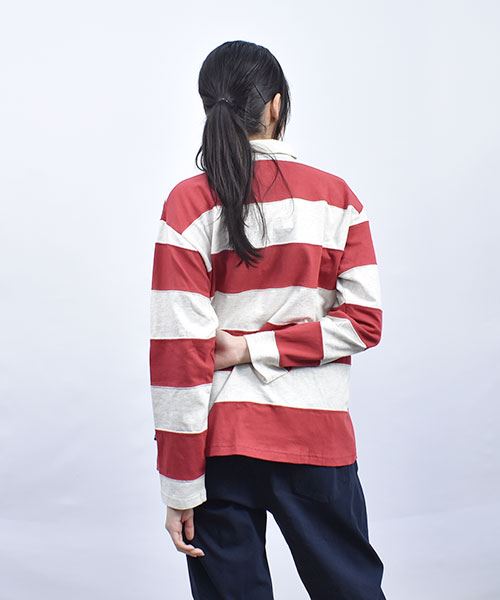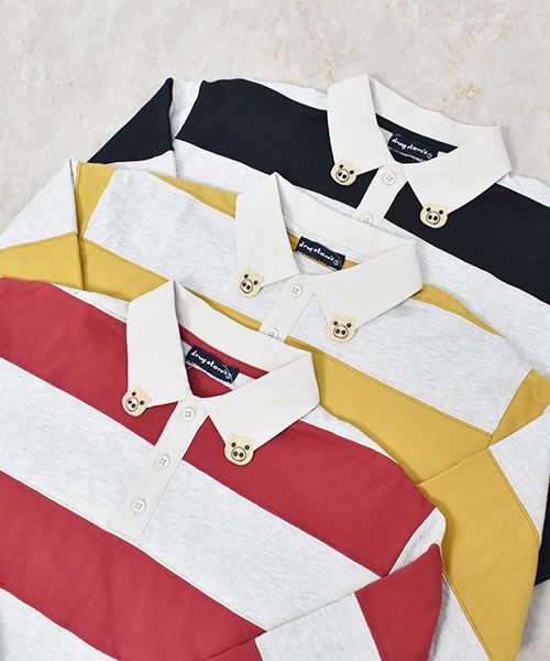 drug store's 20/-OE天竺 ブタ顔アップリケ衿 ラガーシャツ