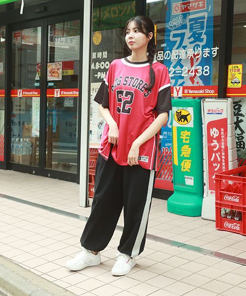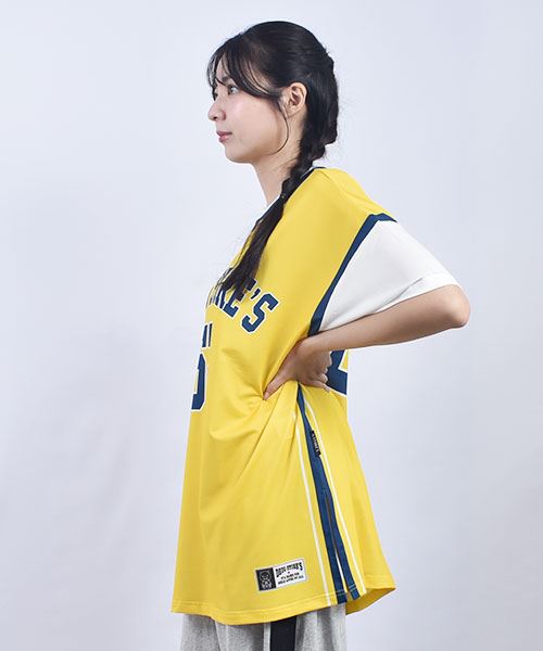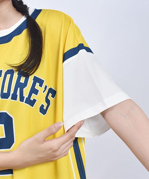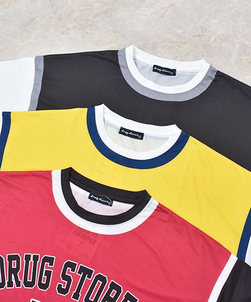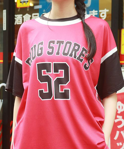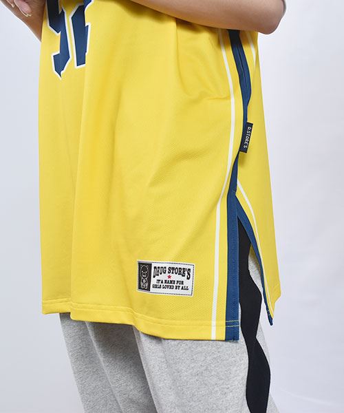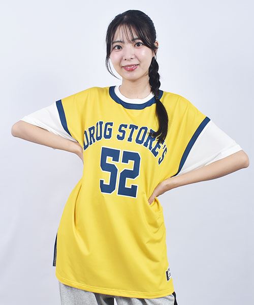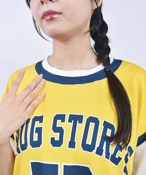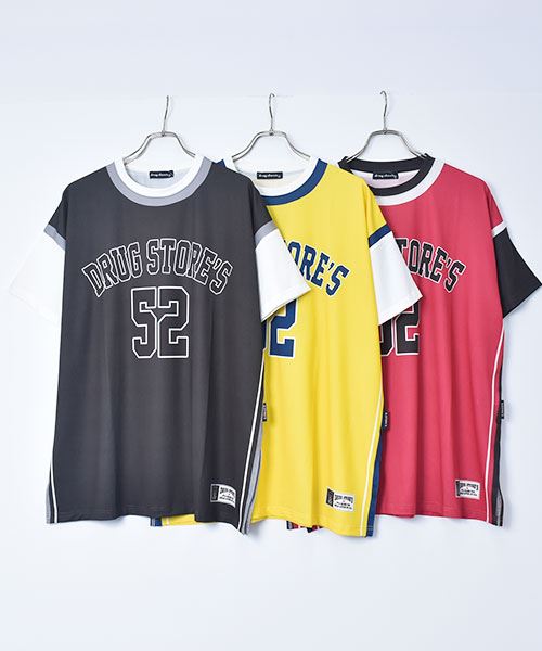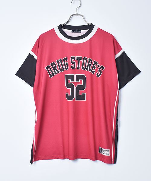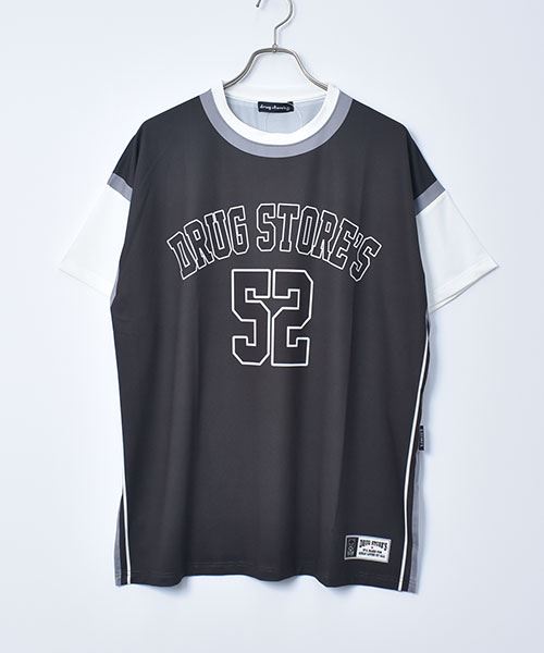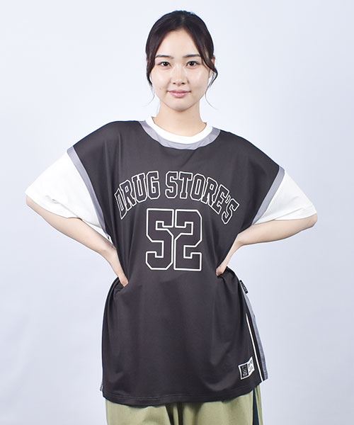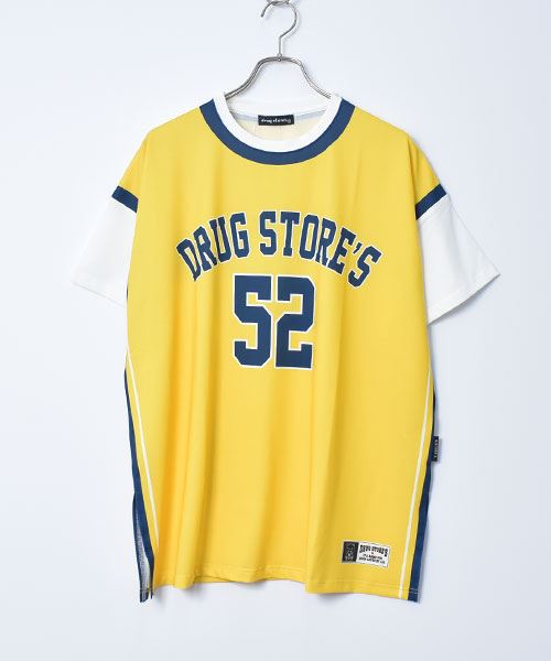 drug store's スポーツメッシュ バスケットボールユニフォーム風プリント 丈長スリットT
