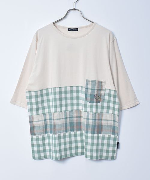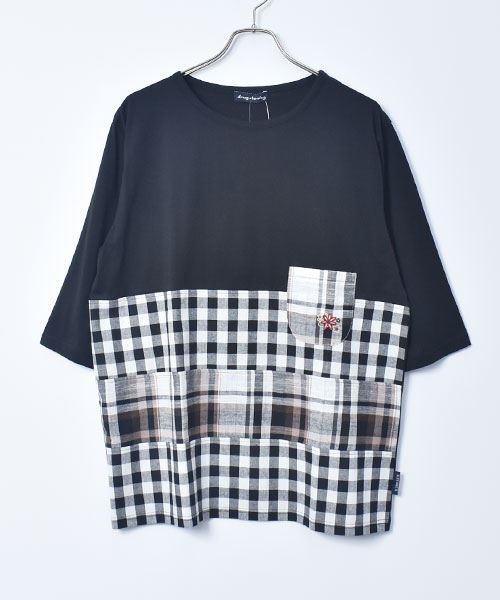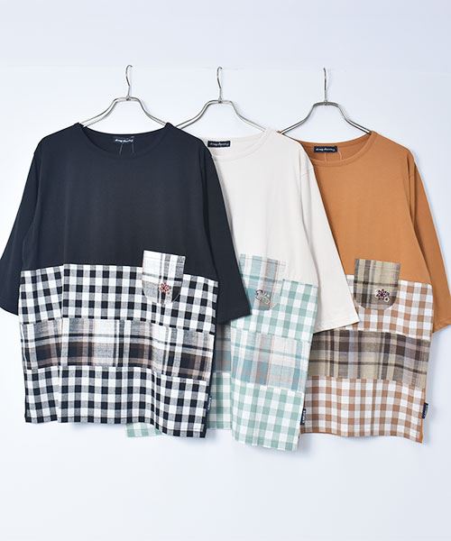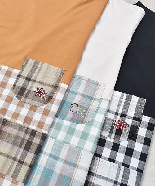 drug store's 32/-天竺 チェックハギハギT