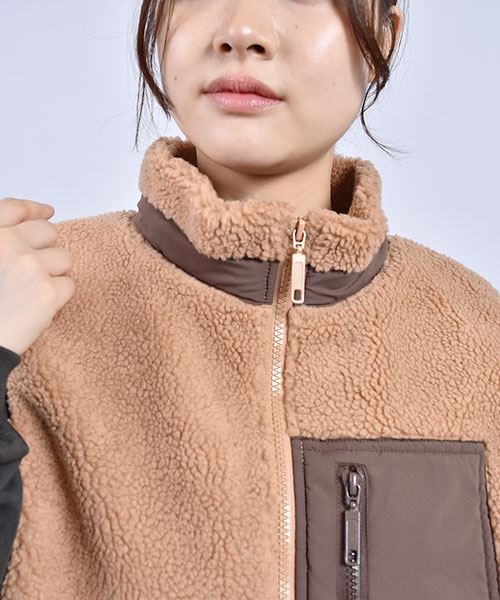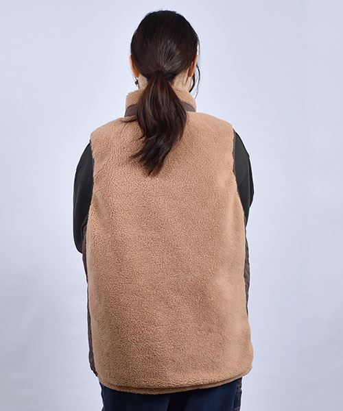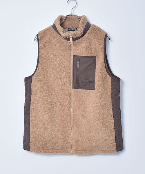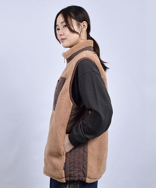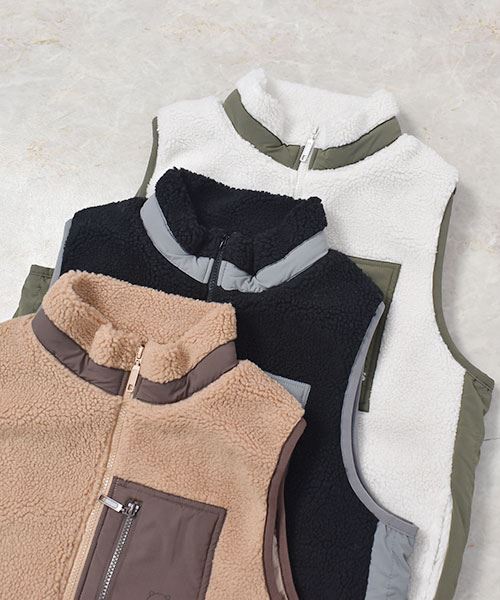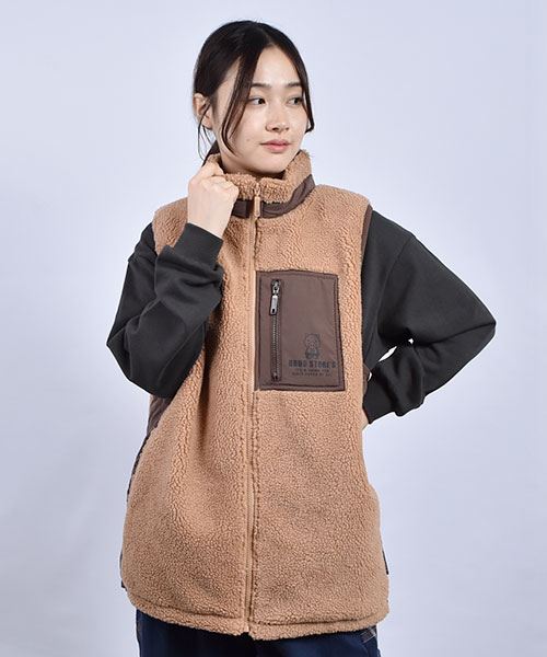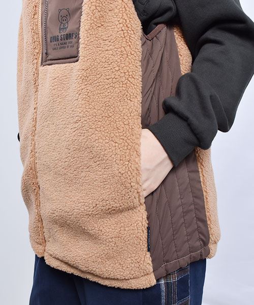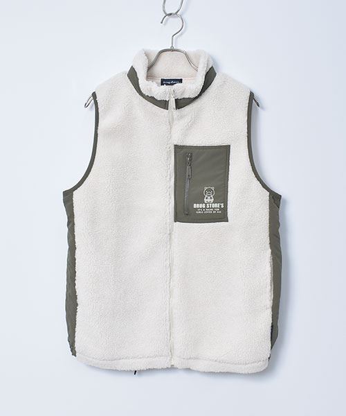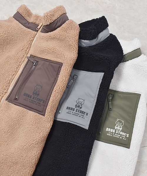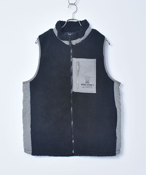 drug store's 脇切替 スタンドカラーブタプリントポケット ボア ベスト