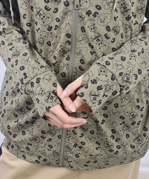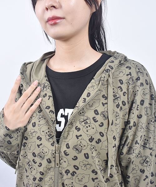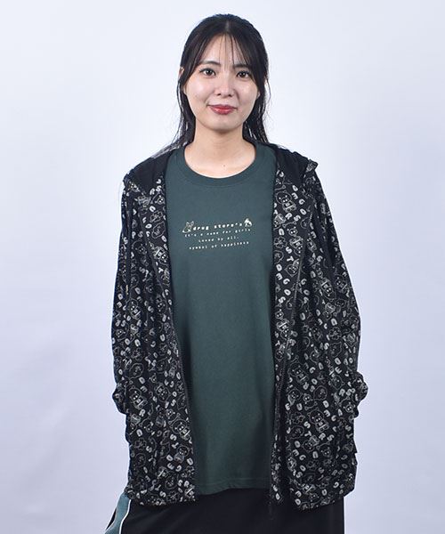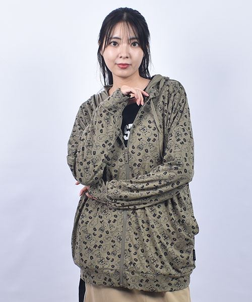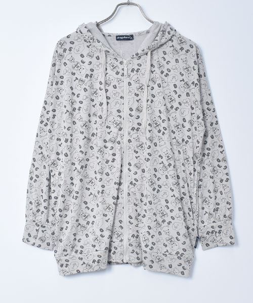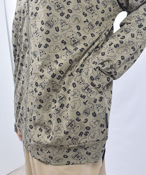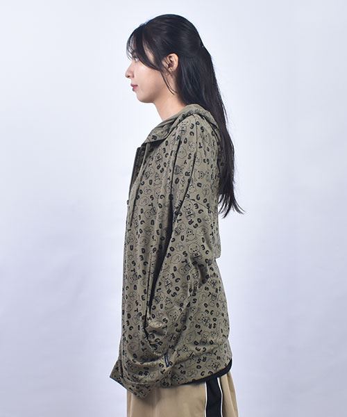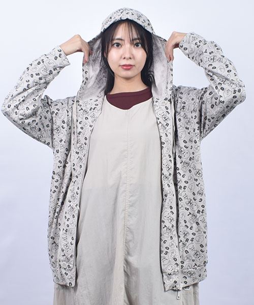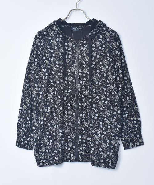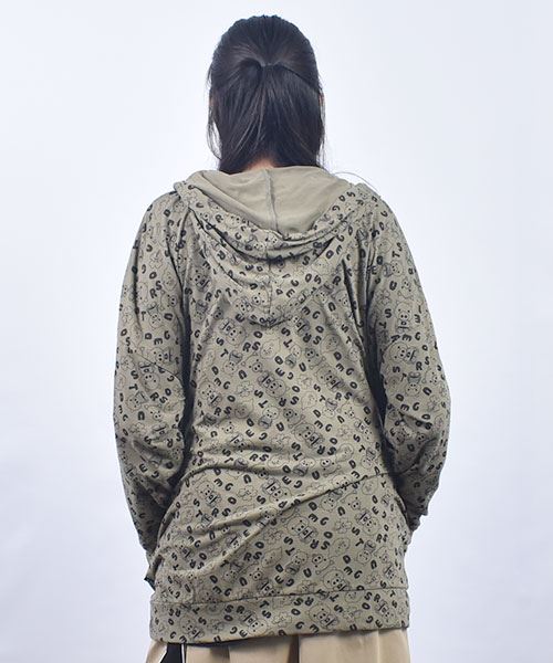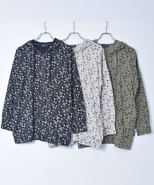 drug store's T/C天竺 総柄プリント 指穴付き ゆったり パーカー