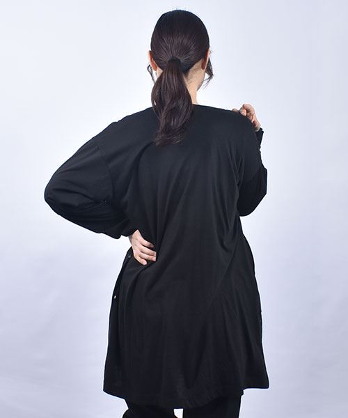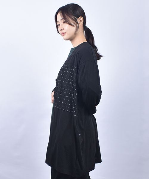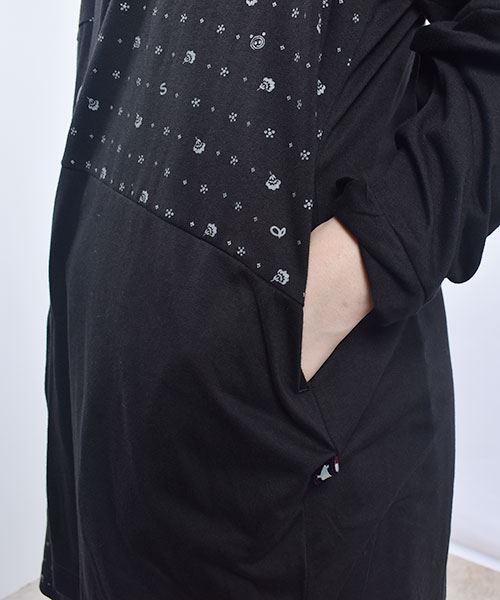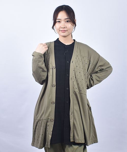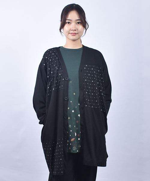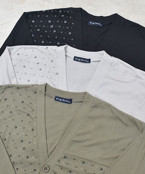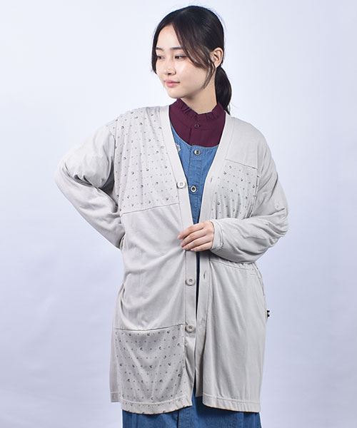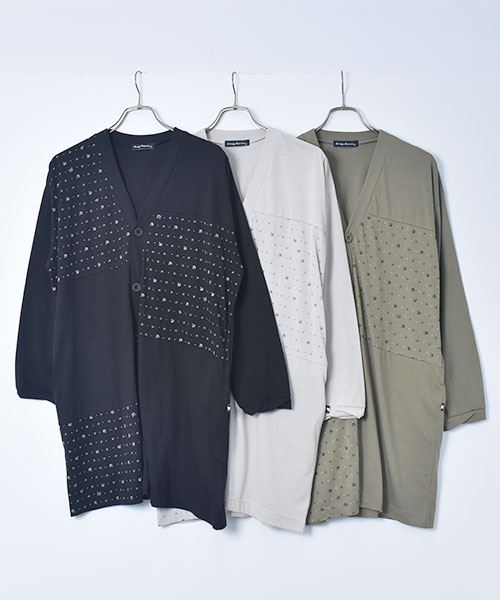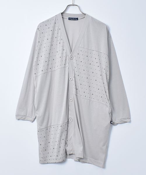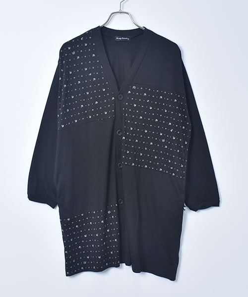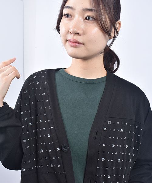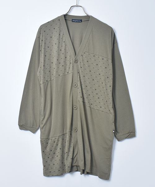 drug store's T/C天竺 総柄プリント ハギハギ ロング カーディガン