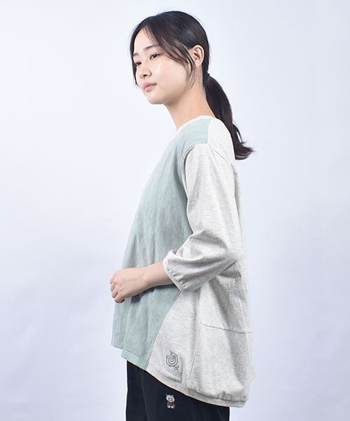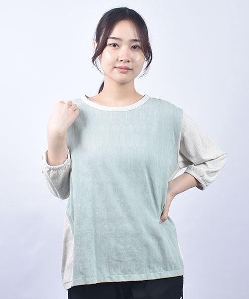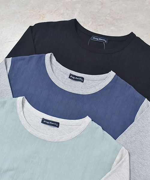 drug store's 18/-天竺 前身布帛切替 7分袖 T