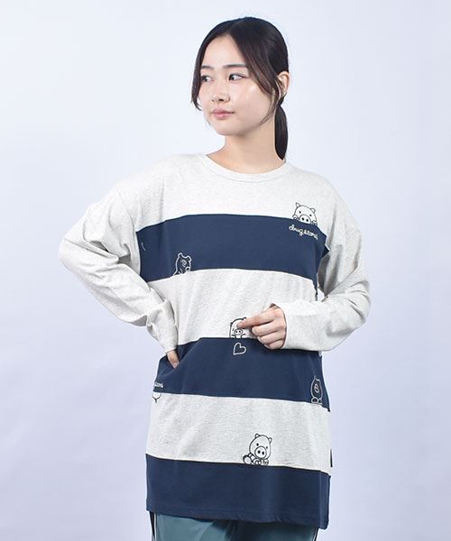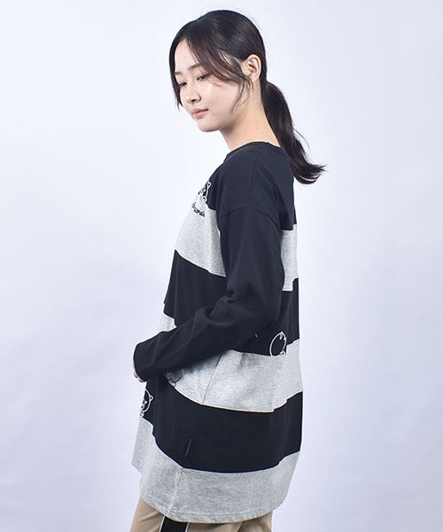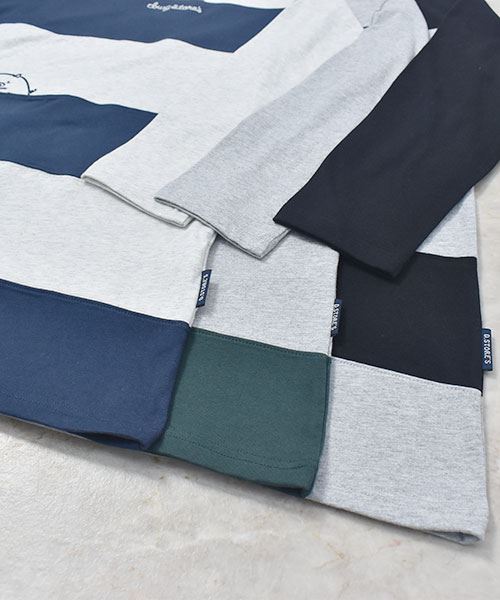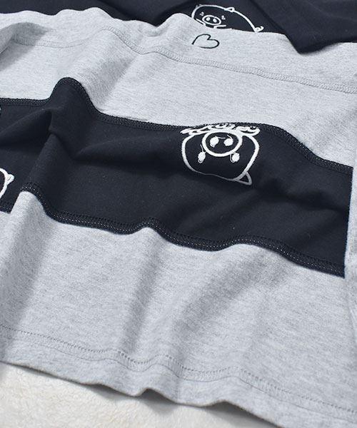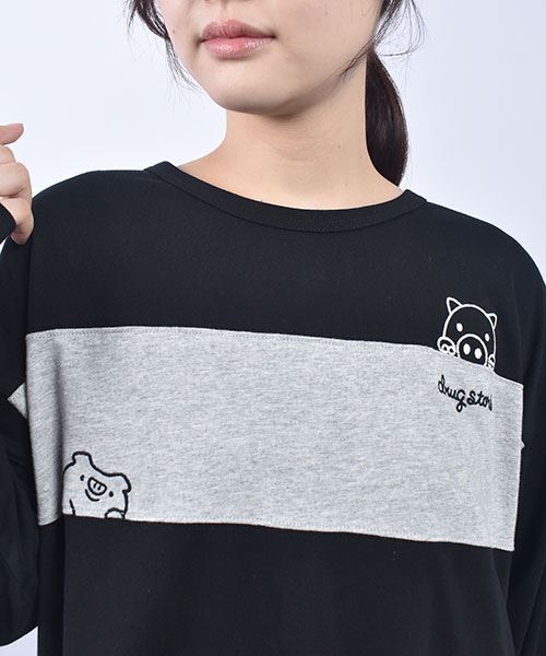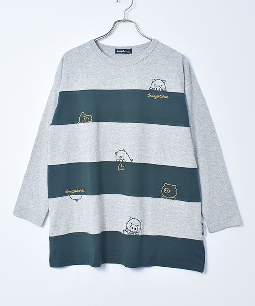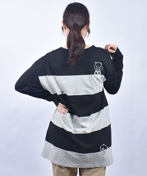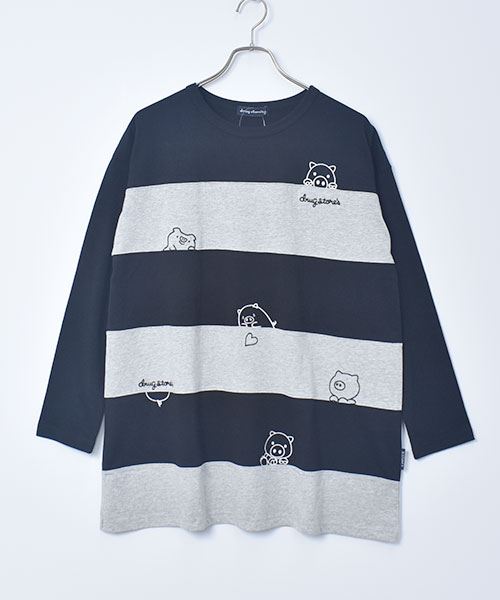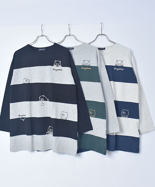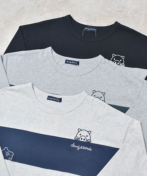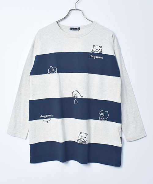 drug store's 18/-天竺 ハートン&スタンディ刺繍 ボーダー切替 Aライン T