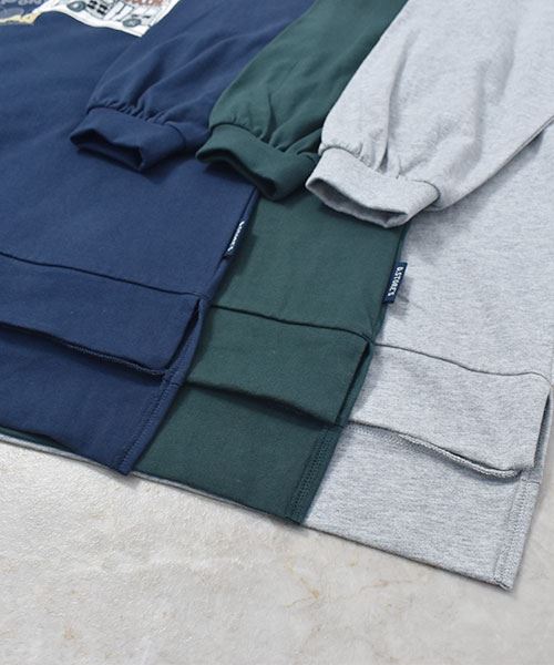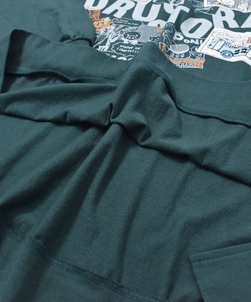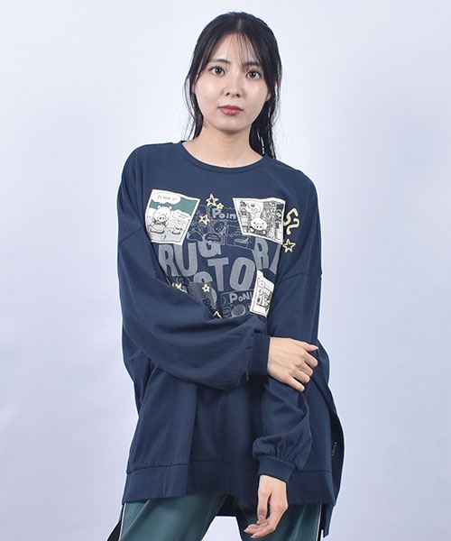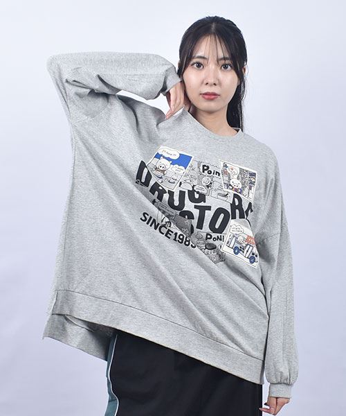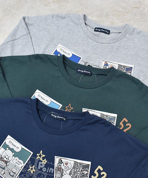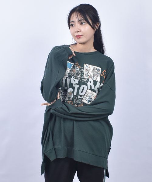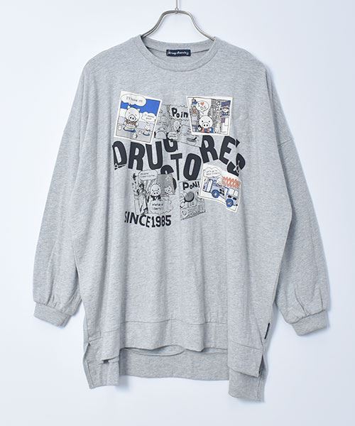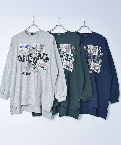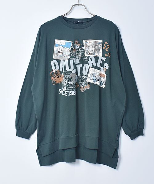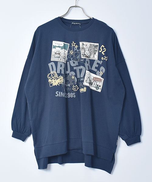 drug store's 18/-天竺 プリント&アップリケ 段違い丈 BIG リブ ロンT