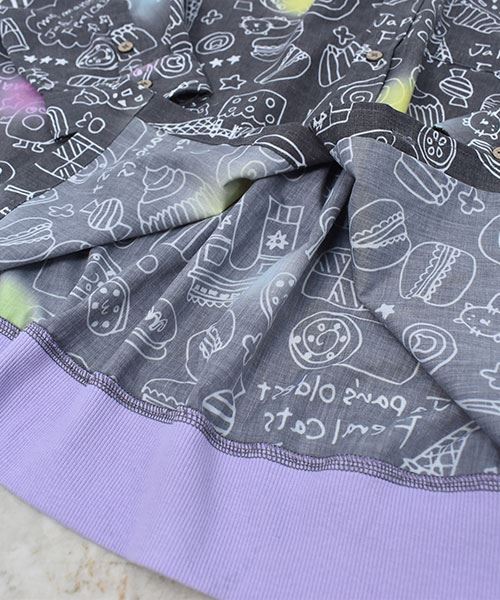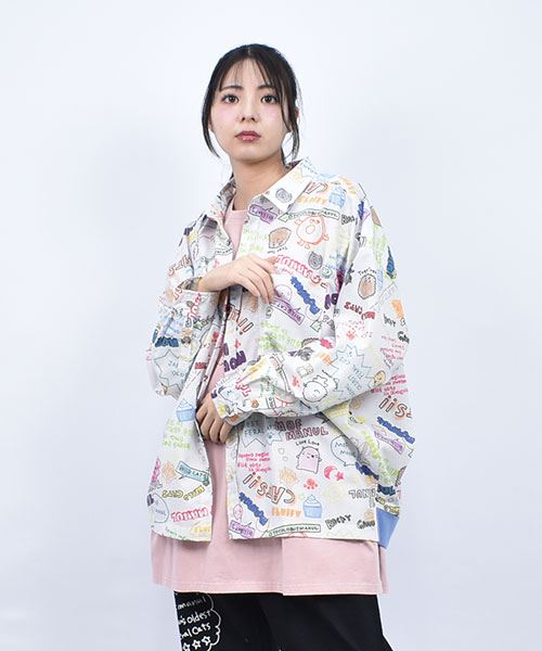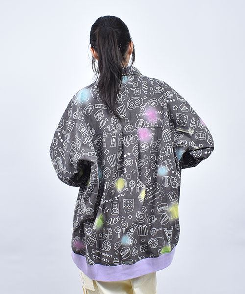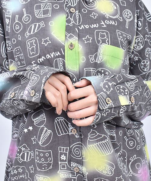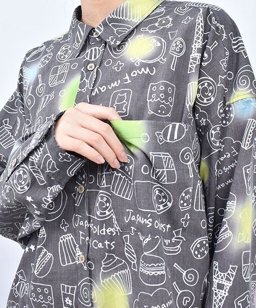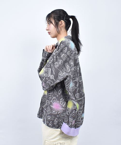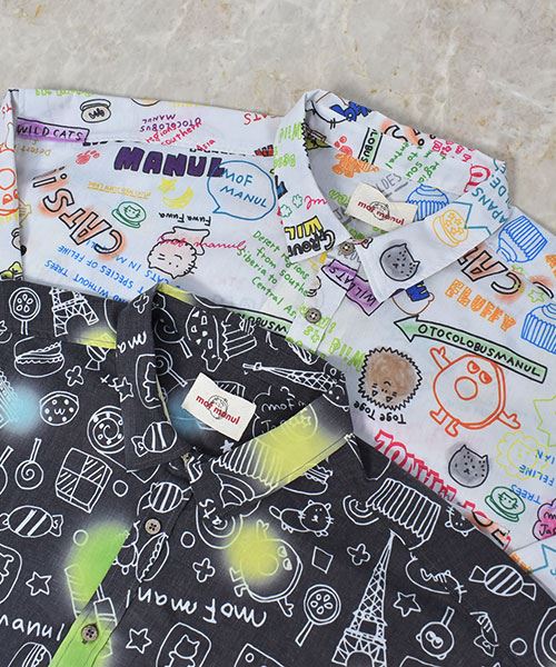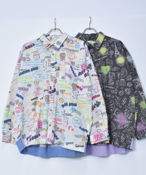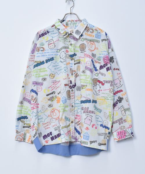 mof manul TC布帛 後裾リブ 総柄プリント ワイドシャツ