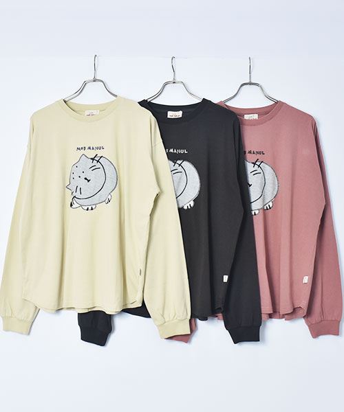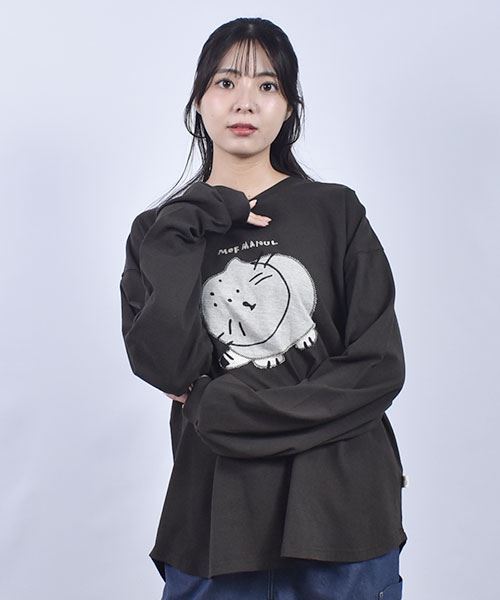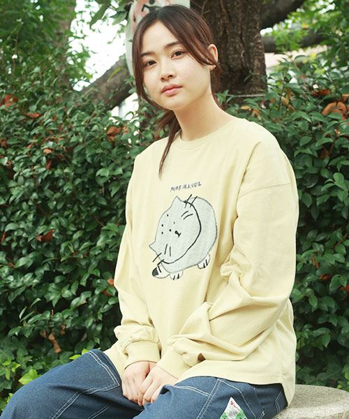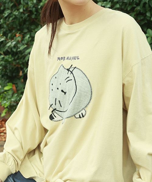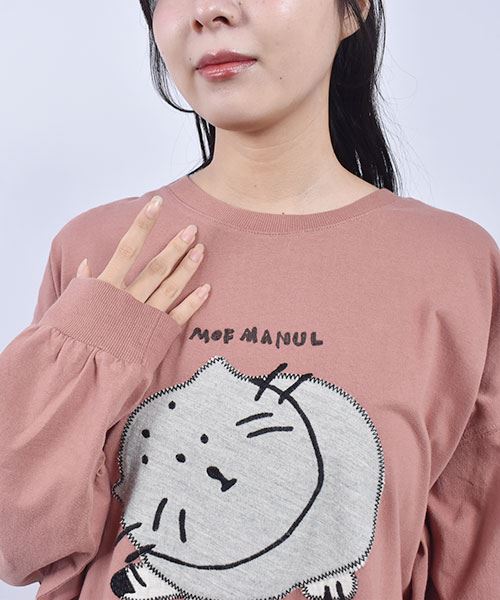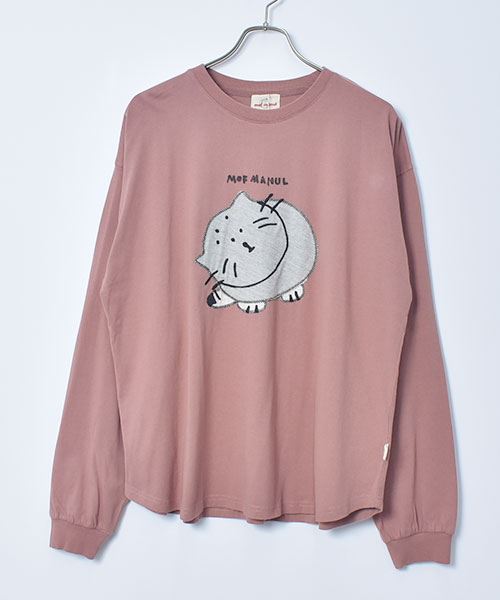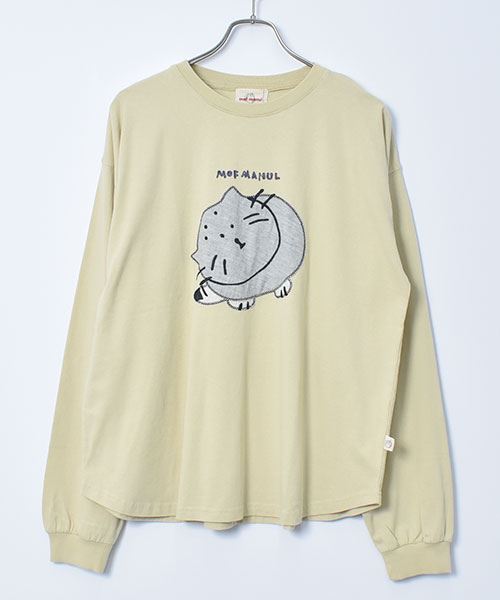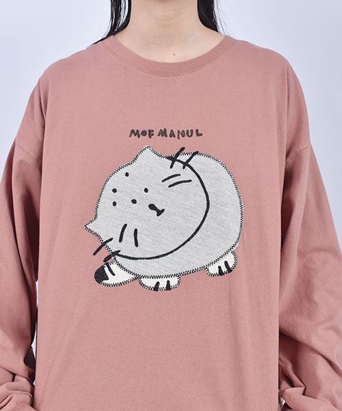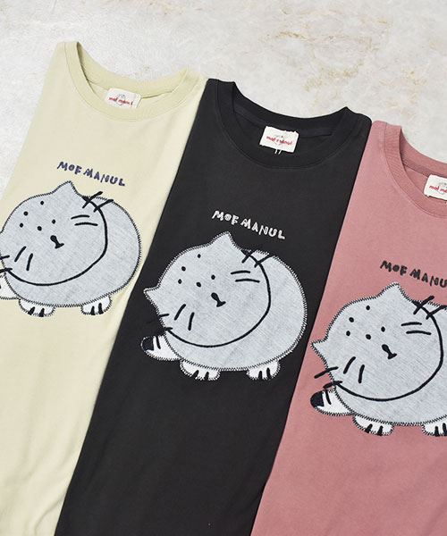 mof manul 20/-OE度詰め天竺 マヌルネコアップリケ リブT