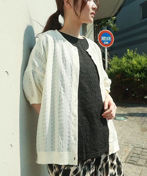 D.S.CLUB 刺繍 ドルマンスリーブ リブ カーディガン