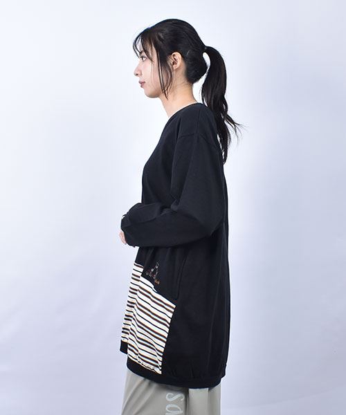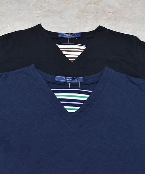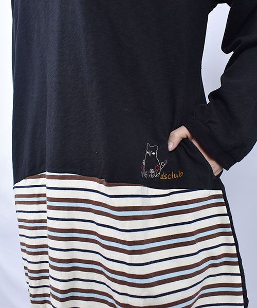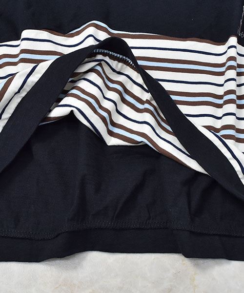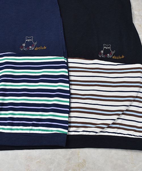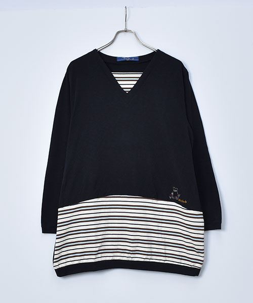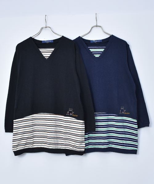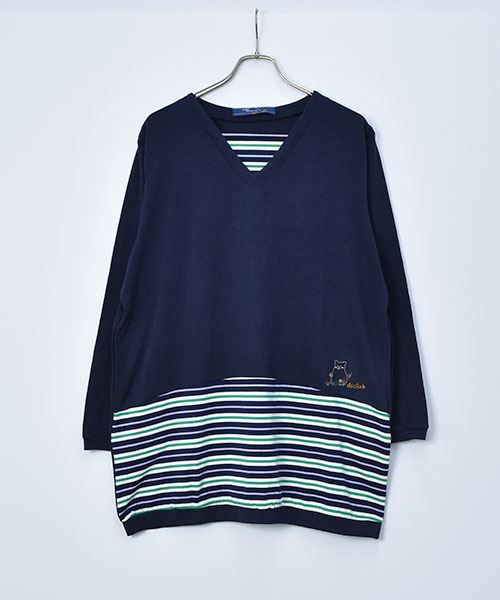 D.S.CLUB 天竺 Vネック ボーダー重ね着風 チュニックロンT