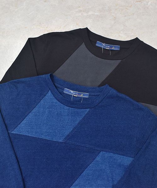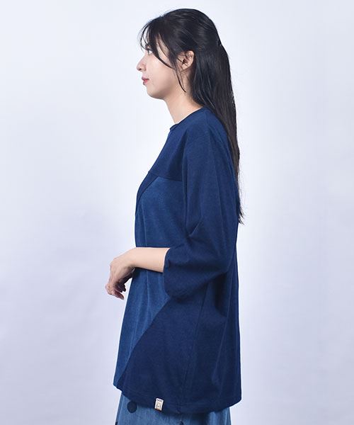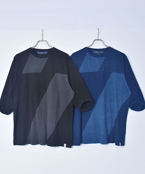 D.S.CLUB インディゴ天竺 配色切替 7部袖 T
