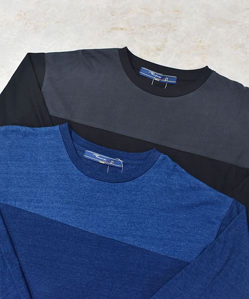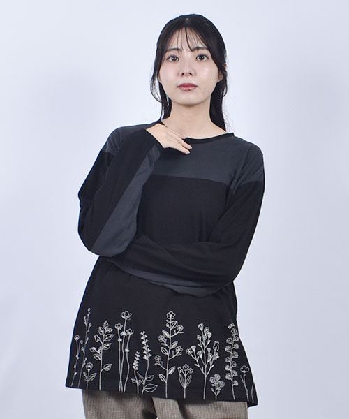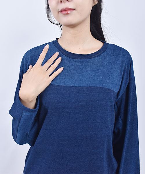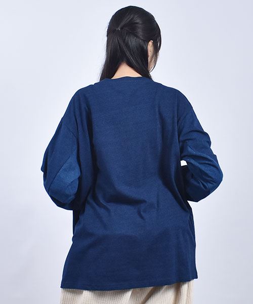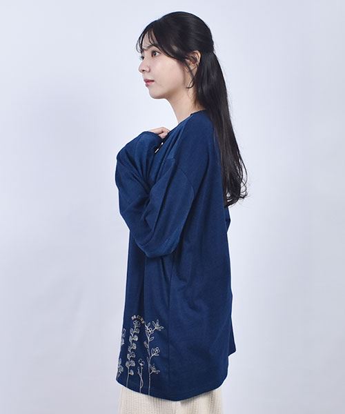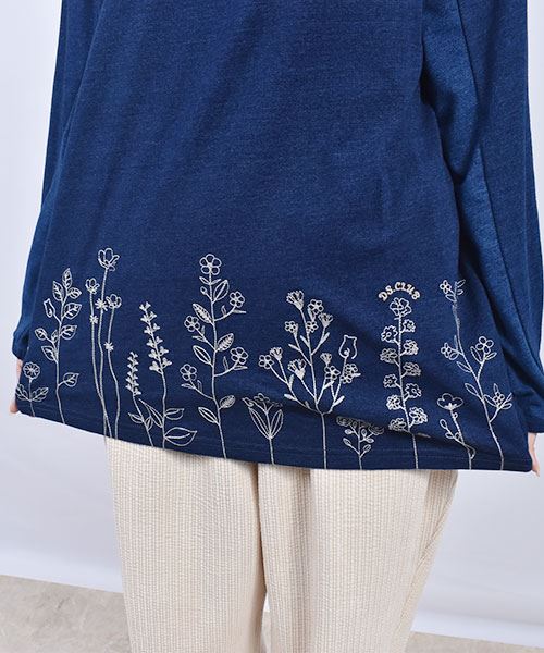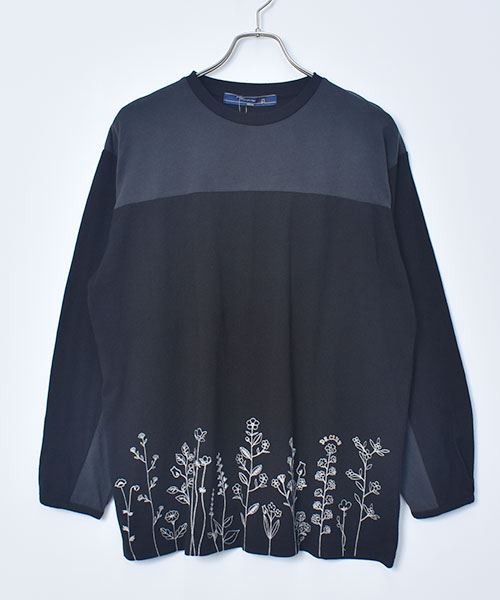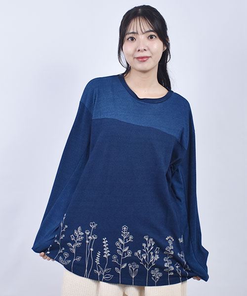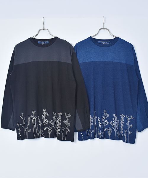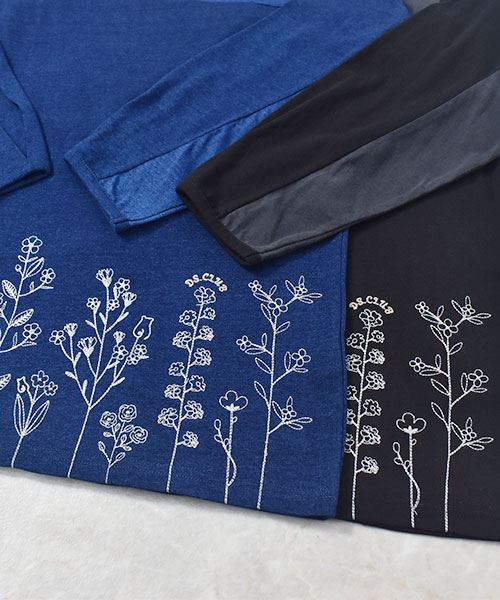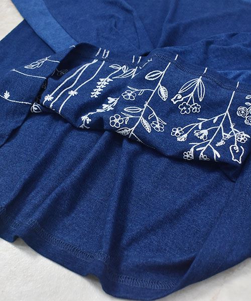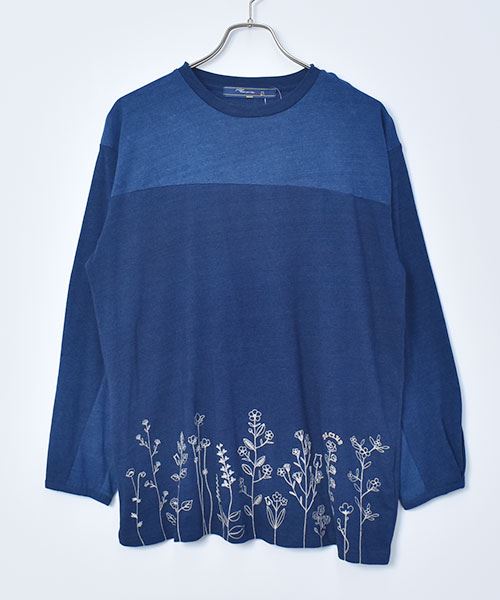D.S.CLUB インディゴ天竺 切替 花刺繍 ロンT