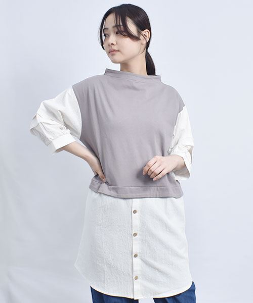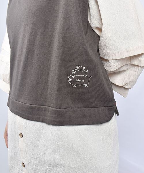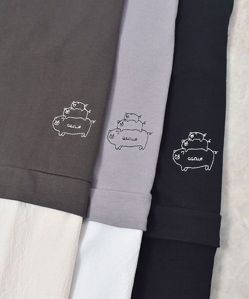D.S.CLUB 天竺 ブタ刺繍 7分袖 カットチュニック