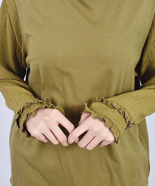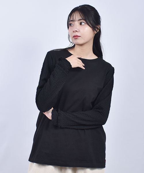D.S.CLUB 天竺 袖シャーリング 袖口フリル ロンT