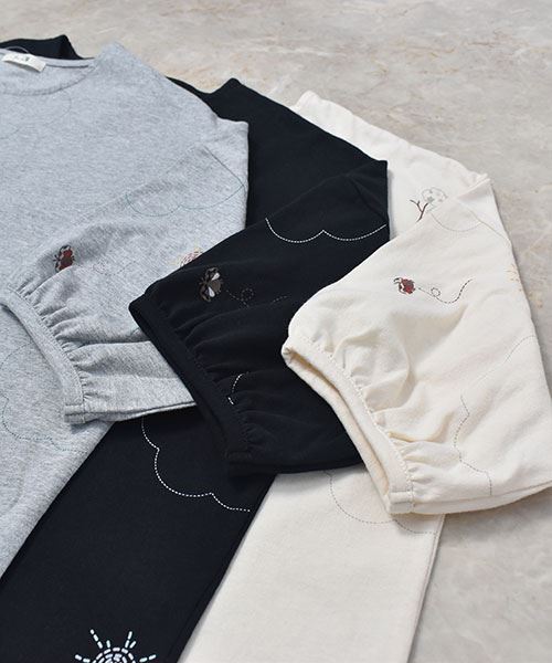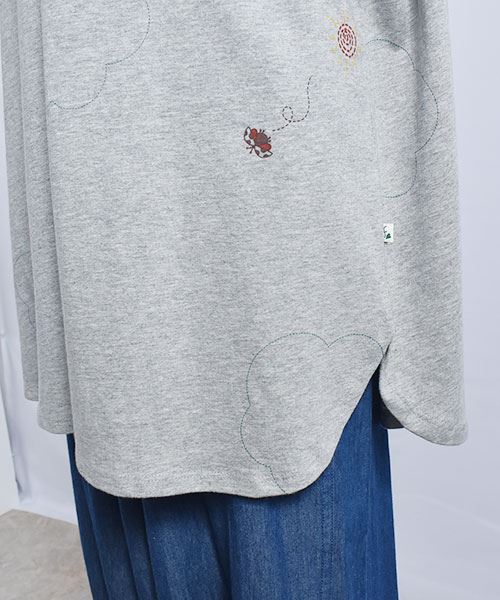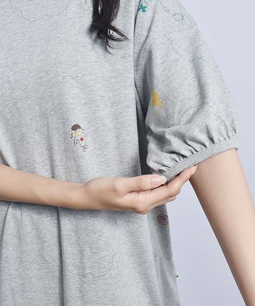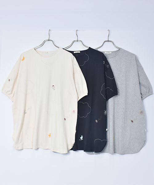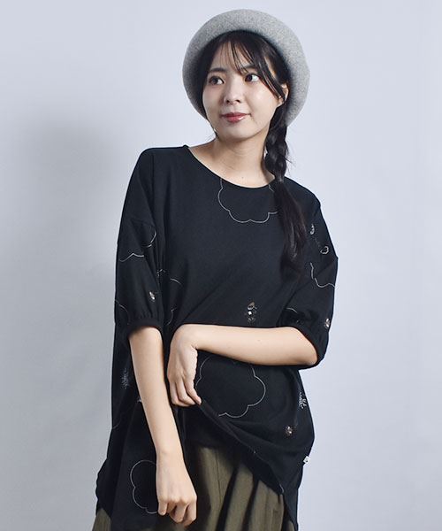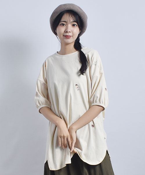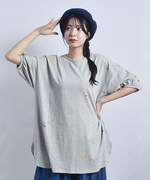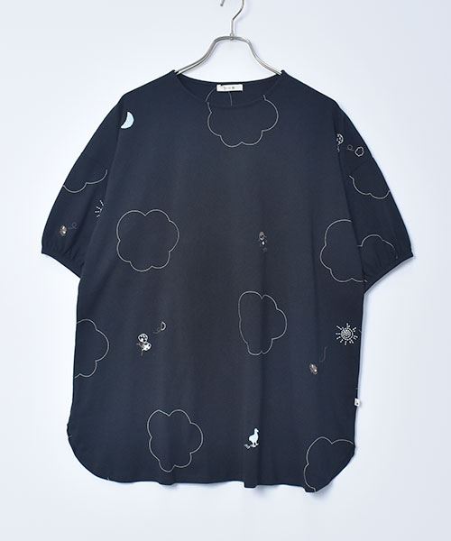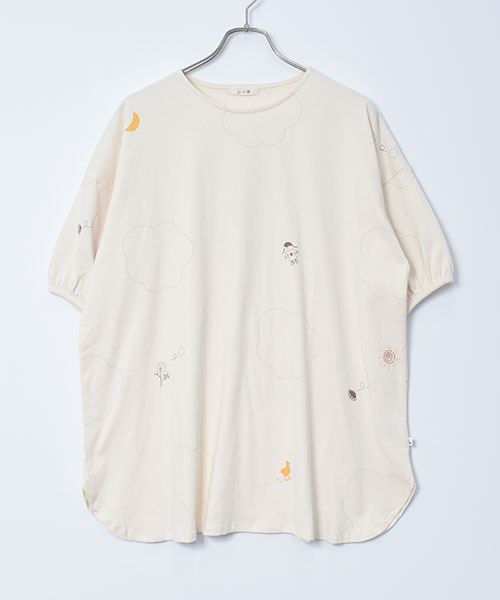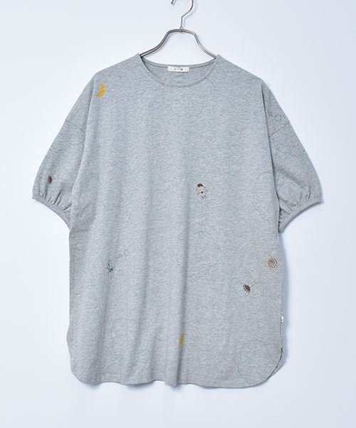 fu-ai OE天竺 総柄 パフ袖 ドルマンチュニック プリントT
